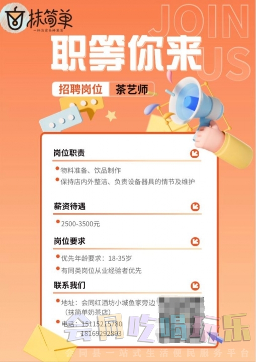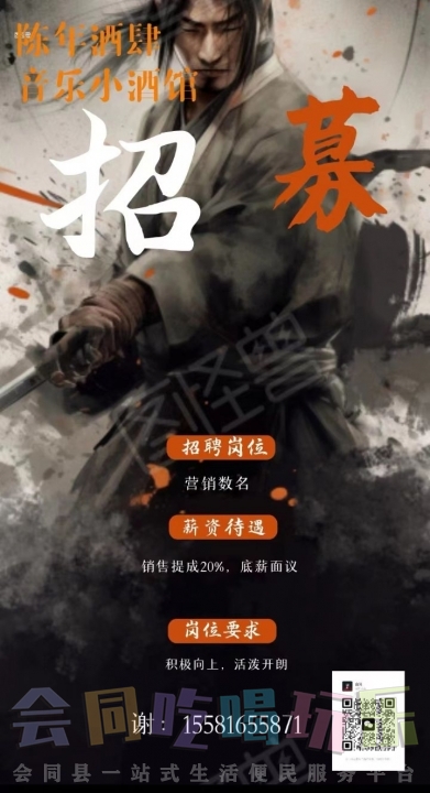 会同陈年酒肆音乐小酒馆招募岗位:营销数名,销售提成20%,底薪面议要求:...