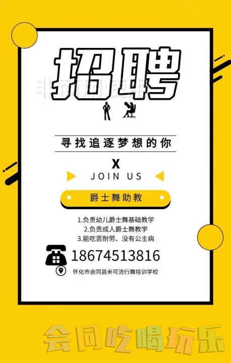 会同米可流行舞培训学校 招聘爵士舞助教:1、负责幼儿爵士舞基础教学2、负...