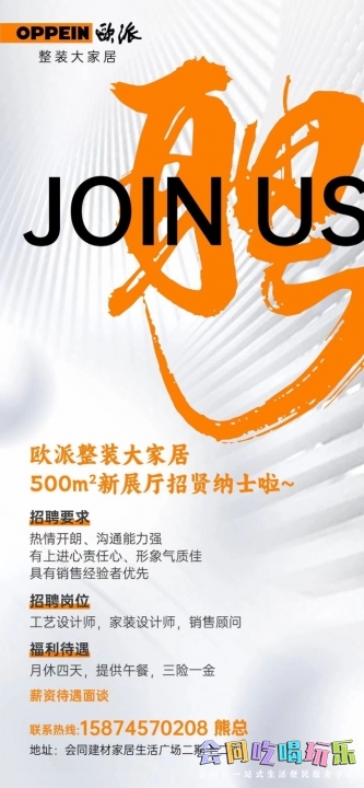欧派整装大家居500m²新展厅招贤纳士啦~招聘要求热情开朗、沟通能力强有上...